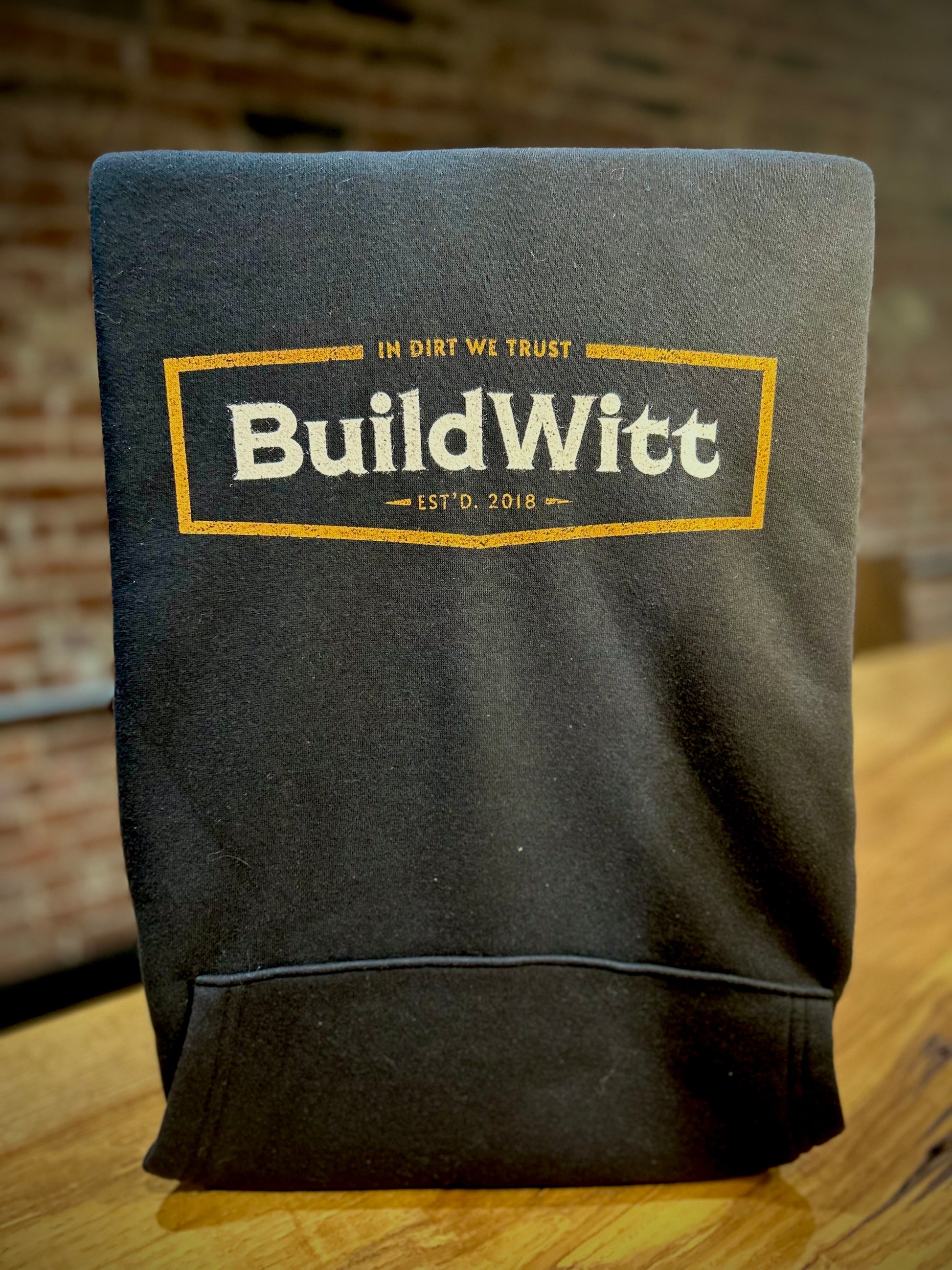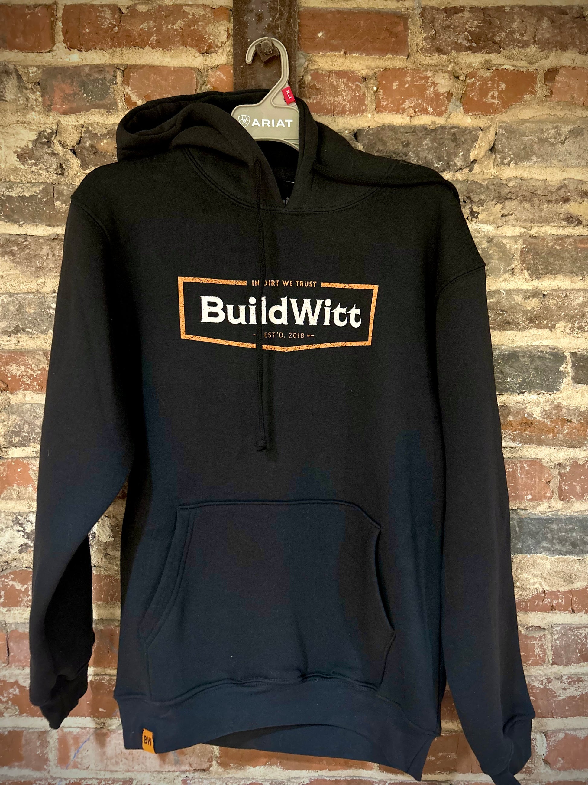 Quantities Limited! Commemorative soft cotton blend hoodie with BuildWitt/In Dirt We Trust logo on the front.